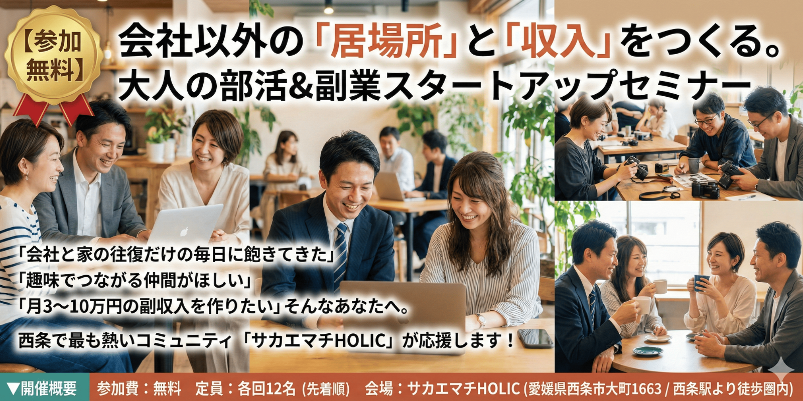 「会社と家の往復だけの毎日」に飽きていませんか? 趣味でつながる仲間がほしい方、得意なことを活かして月に3万円〜10万円の副収入を作ってみたい方へ。愛 […]