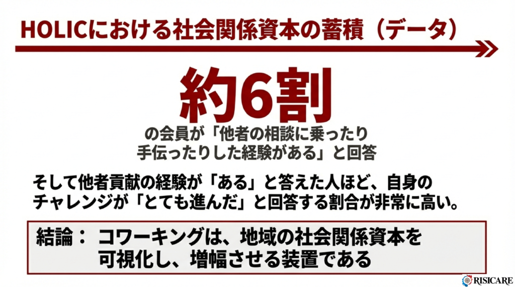 コミュニティ内で「他者の相談に乗ったり、手伝ったりした経験(GIVE)」がある人ほど、自分自身の事業やチャレンジも「進んだ」と回答する割合が高いんです 。